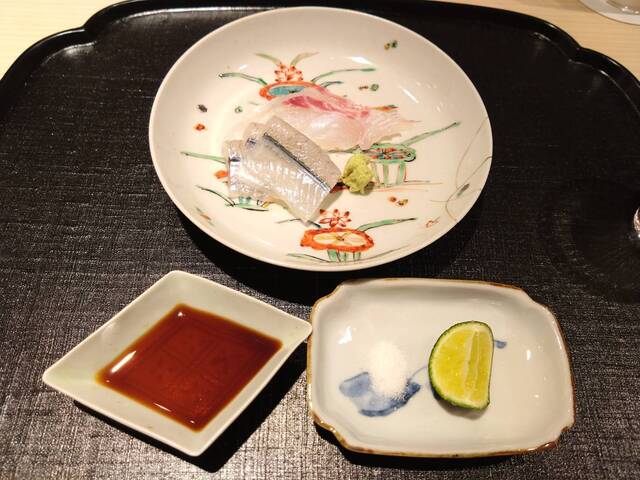 辛味大根と締めた小鰭の驚きの組み合わせ。