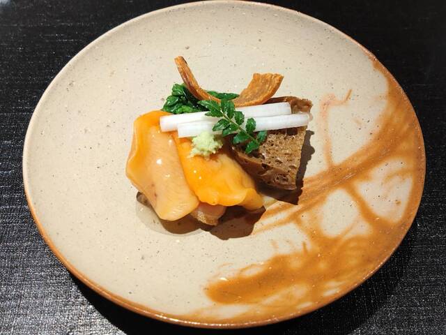 厚い鮑と揚げ出し、そして出汁の餡の組み合わせが最高でした。