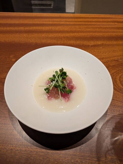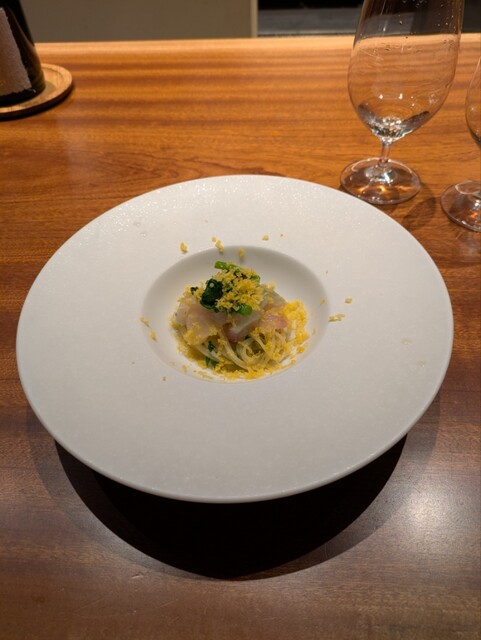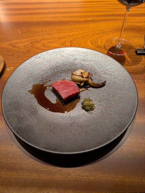 9種のペアリングを選んだのですが、ワインだけではないとの説明を受け、全部ワインに変更も可能とのこと。初めての訪問なので、任せてみたが、これが大正解!ワインが美味しいだけでなく、今まで飲んだことないような日本酒も出てきて大満足。