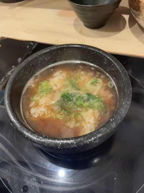 最初に餃子が出てきたのですが、タレはもちろんなのですが、具がとても美味しいので胡椒と山椒のみで戴くとこれがまた絶品。これもこちらの好きなメニューの一つでした。そしてつけ麺のだし汁がIHに。麺は最高のコシともっちり感。ゴマの練りこみ麺は不思議と炭水化物取りすぎ罪悪感をチャラにしてくれます。今日は麺に何も付けずに味わってみたり色んな食べ方をしたのですが、鴨チャーシューが切れてモモ肉のしゃぶしゃぶに。これがまたいつもと違って最後にとても良かった!そしてぞうすい。このセットも卵とネギとジャコが付いて200円で最高のダシを最後まで楽しめる素晴らしいメニューでした。最後の最後まで通い続けることができて、念願の餃子も食べれて最後まで満足させていただきました。