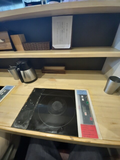席も2名座っておられてすんなり着席。席には各々にIHコンロ??