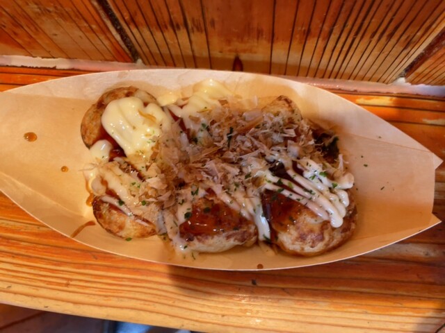 しかし、平日と週末では大きな差。この日は平日だったので歩道に及ぶ行列人数はわずか3名。これならすぐ食べられそう。10分くらい並んだら注文レジへ。今回は軽く食べていくつもりでよったので6個ソースでビール。ビールは一緒に頼むと少し割引されます。案内された場所は一番奥。前もここでした。とにかくこちらはタコが大きく歯応えも良いのが特徴。しっかりタコのダシが出てアツアツですが、美味しかったです。ごちそうさまでした!