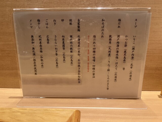 就職した長男がGW休みで帰省したので、家族全員でこちらのお店へ。今回は朝7時過ぎに自宅を出発し、8時半には着いたので一回目のローテーションで入店。注文は悩みましたが、家族全員塩そばを注文し、ハーブ焼豚丼(小)と焼豚丼(小)を注文。