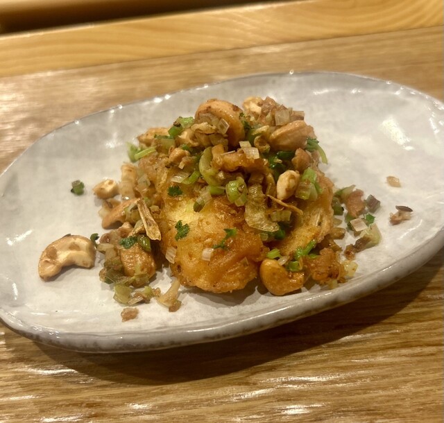 前菜3種の海老紹興酒漬、サーモン豆板醤漬け?