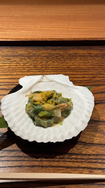 〈ホタテと九条ネギのぬた〉