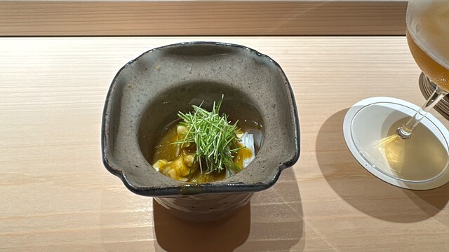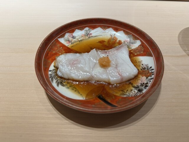 つまみから寿司から何から何まで最高でした。まず驚いたのはアコウハタの皮は炭火焼きにし、身はしゃぶしゃぶにするという香ばしさ×ぷりぷりの両立ができている一品。美味しすぎてびっくりです。アワビの肝ソースに酢飯を合わせて食べるリゾットも一級品。お寿司に関してもシロアマダイ、新イカ、シマアジ、ウニ、クルマエビ、マグロ等どれも一流の技術と準備を感じるネタばかり。マグロの甘さを最大限に活かすために包丁も変えているとのこと。