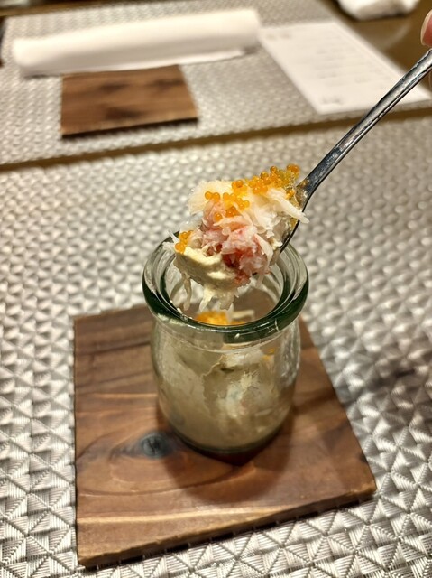 蟹の身・蟹味噌・とびこを混ぜて食べると旨みがぎゅっと凝縮