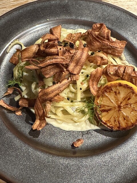 レモンを絞ると爽やかな味わい、クリームパスタですが、重たくない。