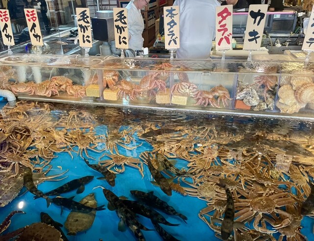 函館駅前朝市の海側、ライブ感ある海鮮居酒屋の有名店