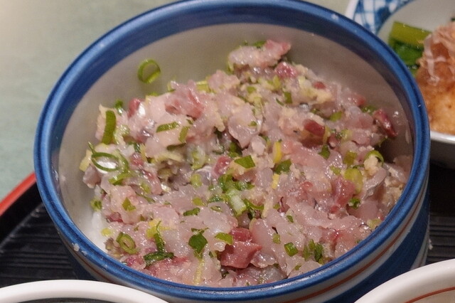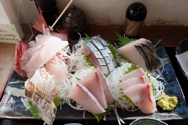 幸運にも高級魚の“やがら”にも出会えた刺身定食に舌つづみ