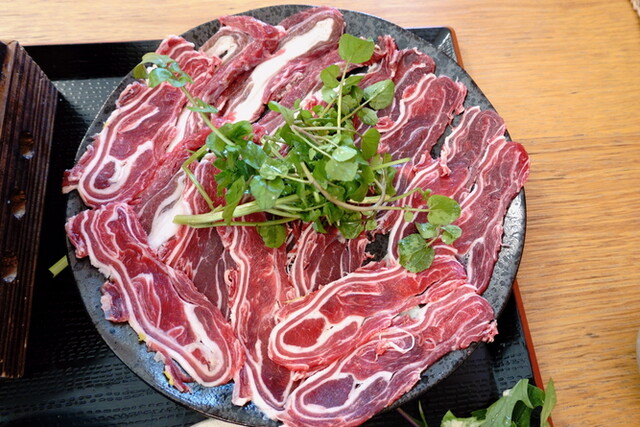“鹿肉のすき焼“と”鹿肉の刺身“