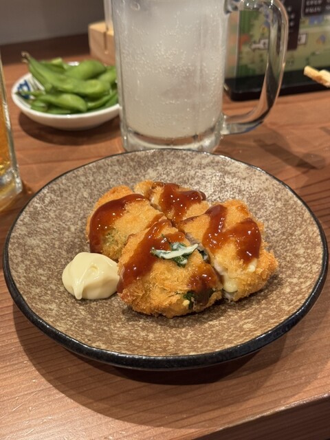 カウンターに案内していただき、とん平焼き、ささみチーズ、だし巻き、せせりの唐揚げ(これがめちゃ美味しかった)を注文。