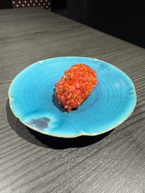 和牛ユッケは、目の前で混ぜてくれて食べる前から卵とユッケの濃厚さが伝わってきました。お味はもちろん最高で、ねっとり感と旨みが溢れていました。