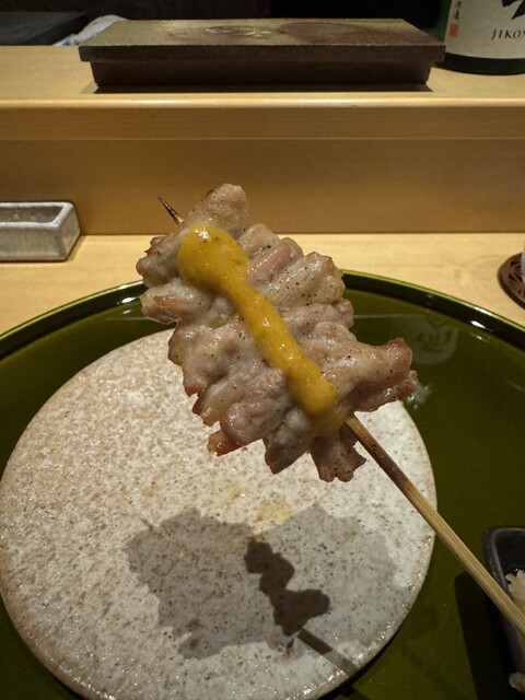 選べる希少部位は、せせりを選びました。梅マスタードがかかっていて、さっぱりいただけました。