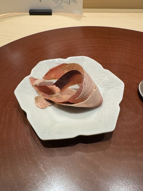 長期熟成昆布のお出汁は、出汁がしっかり出ていて優しかったです。鰹節は半生で分厚く、ツナのような味わいでした。