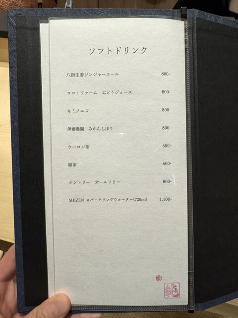 ディナーに2名で訪問。東銀座駅から徒歩1分ととても近かったです。お店は地下一階にあり、五代目花山うどんを正面に左側へまわり込むと地下への階段があります。店内はとても落ち着いた雰囲気でとても居心地がよかったです。会食やデートにおすすめです。
