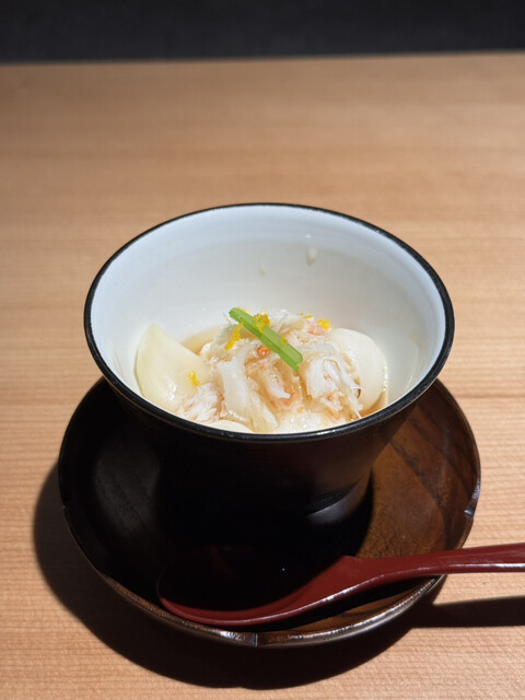 蟹と卵白の茶碗蒸しは、ゴルゴンゾーラが入っていてビックリ!とても洋風なお味でとても好みでした。