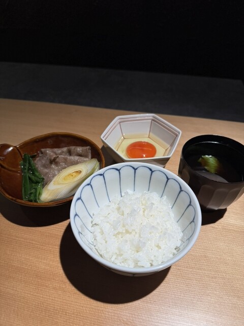 和牛関西風すき焼きは、リブロースのマキを春菊のペーストと真っ赤卵でいただきました。甘すぎずちょうど良く、春菊・卵との相性がめちゃくちゃ良かったです。