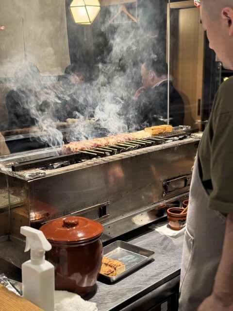 ディナーに2名で訪問。錦糸町駅から徒歩3分ほどでとても近かったです。店内は、焼き姿が見れるコの字のカウンターとテーブル席がありました。オシャレな雰囲気で過ごしやすかったです。デートや会食にオススメです。