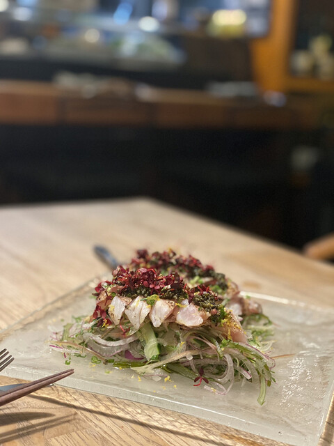 三重甘鯛、青梗菜、カラスミ、フレッシュトマト。アンチョビソース。2,690円