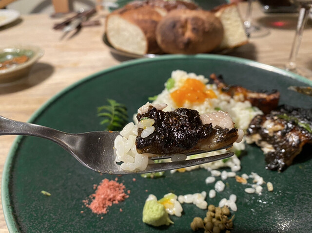 鰹出汁で炊いたリゾットです。