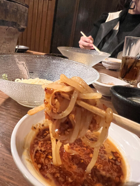 辣油と、胡麻だれが別々で出てくるから辛味は調節できるの。