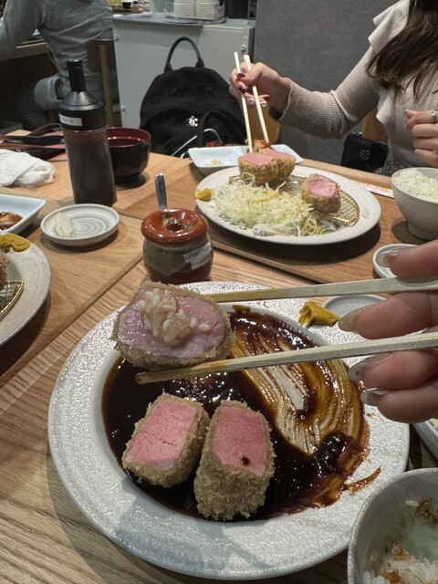 友達はノーマルはヒレカツ定食にしたから私の味噌を隣から付けて食べたりしてソースと味噌を楽しんでた!