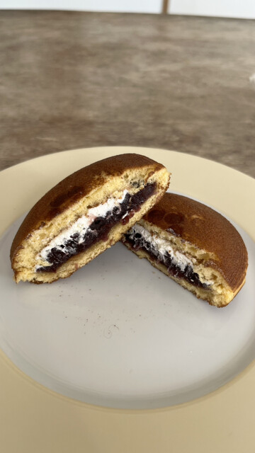 愛媛銘菓「どら一(いち)塩バター」の塩バタークリームからは、ほのかに塩味が感じられ、このクリームと粒餡が口の中で合わさると、甘塩っぱくてめちゃくちゃ美味しいです!!!