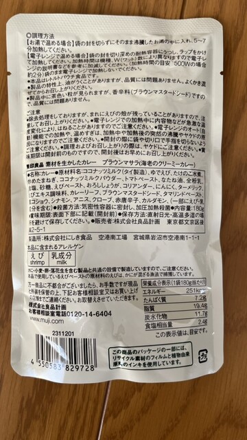 「無印良品のカレーの中で一番美味しい」と言われている「プラウンマサラ(海老のクリーミーカレー)」