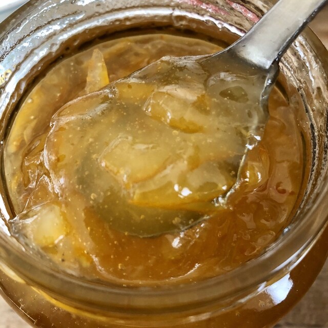 柚子「茶」と書いてありますが、蜂蜜と柚子を混ぜ合わせたジャムのようなものです。