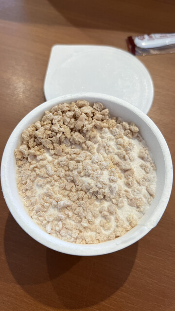 中には、ベイクドチーズケーキ味とレアチーズケーキ味の2種類のチーズケーキアイスが混ざり合って入っています。
