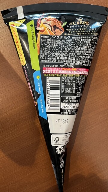「ザ・クレープ キャラメルマカダミア」は、マカダミアナッツの風味が良く、中に入っているチョコレートは板チョコみたいにパリッパリで、めちゃくちゃ美味しい!!!