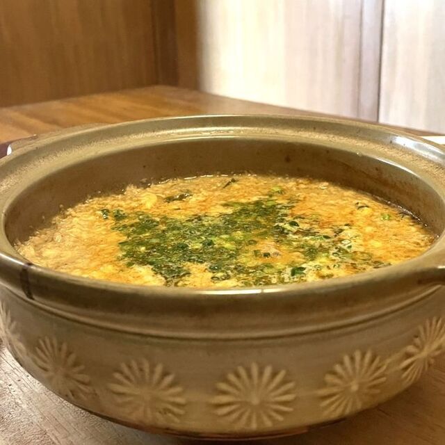 かつお出汁とわかめと白ネギ以外は、水を使わずアンコウやアンコウの肝だけで作られる味の深さとコクが何とも言えない美味しさです。