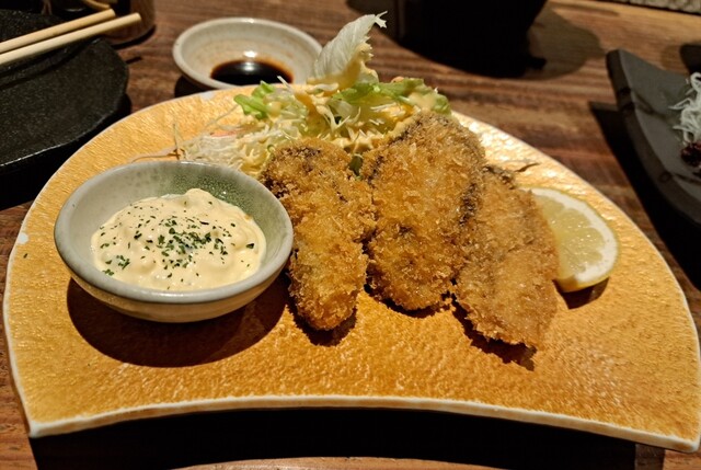 突き出しがつみれ またほっこり 大き目のカキフライ お酒がすすむ お連れも大変喜んでいました ご馳走様でした また来ます