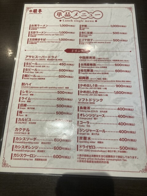 蘭亭 谷九本店(谷町九丁目、大阪上本町、四天王寺前夕陽ケ丘/中華料理、台湾料理)