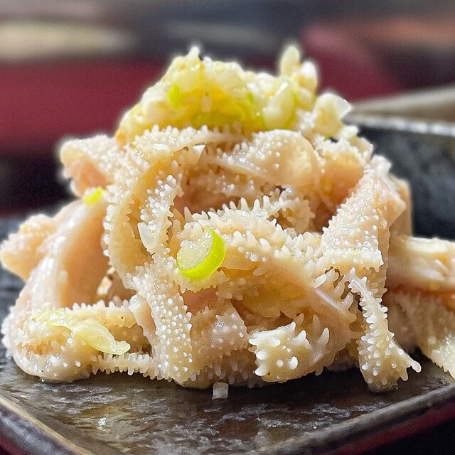 センマイ刺はチョジャンも出してくれるけど付けなくても下味の味付けが美味しいからいつも結局そのままでぜんぶ食べがち♡