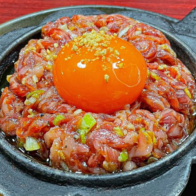 裏メニューの炙りユッケもめちゃうまなので注文必須。