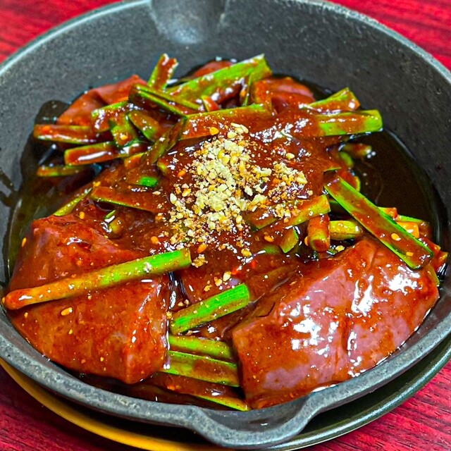 レバニラも味付けが美味しくて大好き!ユッケと同じく、ぐつぐつとろとろになったレバニラをタレごとごはんにのっけて食べるのが最高♡