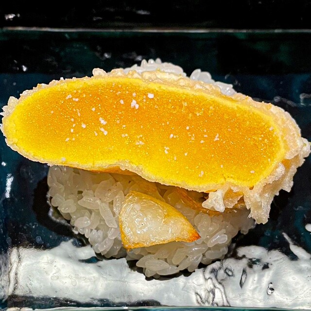 そのあとも全体的にポーションしっかり目だったので食いしんぼうのみんなは喜びそう。むっちりしたカラスミと揚げたてのめひかりの天ぷらの相性が凄くよかったです。あと上にかかってた海苔の香りもめちゃくちゃ良い。