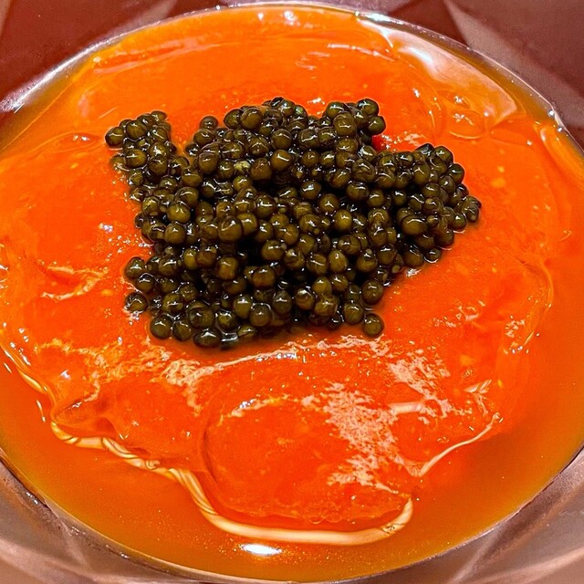 ▫️キャビア、甘鯛の出汁のジュレ、平貝、伊勢海老