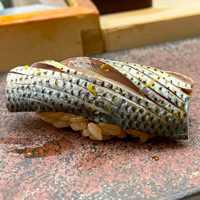 太刀魚塩焼きは特に今までお鮨屋さんでいただいた太刀魚のなかでもいちばん感動したかも…ふわっと口溶けのいい身と、とろける脂と、皮目の香ばしさがなんともたまらん♡