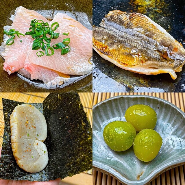 名物の「あん肝すいか」「おはぎ」「金目鯛の皮炙り」