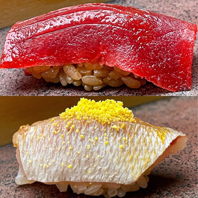 つまみではのどぐろ幽庵焼き、メジマグロ、握りでは背トロ、あん肝すいか、金目鯛の皮炙りが特に美味しくて好きでした♡