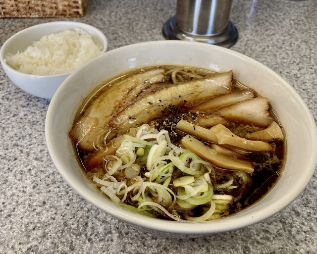 チャーシューはスープの下にも有り 白ご飯小150円と