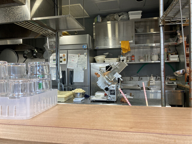ご飯を注文して待つ間に冷たいお茶を一口。