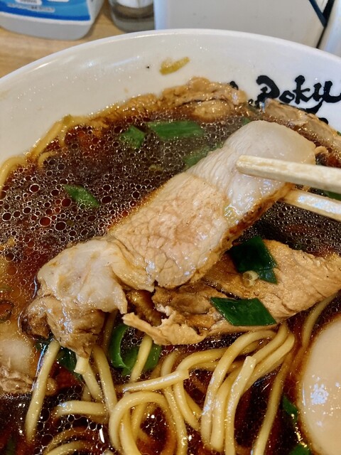 厚みのあるチャーシューと薄めのチャーシューの2種類で厚めから、噛みごたえのある