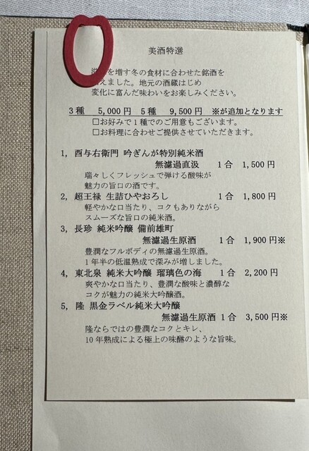 晩秋美酒特撰 メニュー