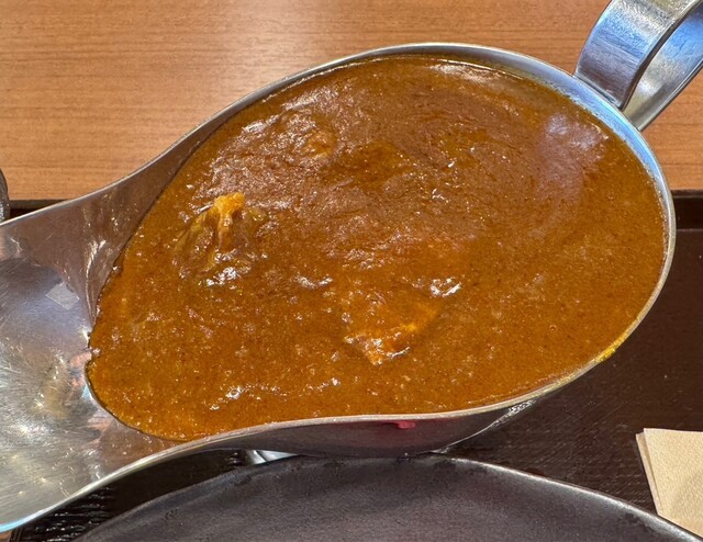 あと、今回、変化があったのが、カレールーの大盛です。従前は、グレービーボートが2つで提供されていたものが、1つのソースポッドに「ナミナミ」のルーというスタイルに変更です。何かあったのかな?お客さんが多かったので、器が足りなくなったとか?分かりません。
