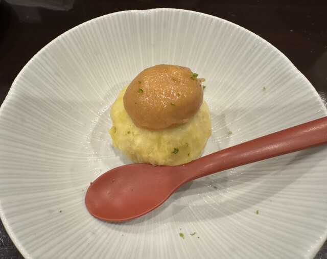 ※ 本葛粉を纏った海老芋の表面のカリッと感に、海老芋のねっとりした官能的な食感と甘さが堪らない。銀杏の爽やかな苦味がアクセントとして良き。
