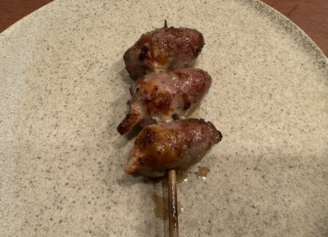 自身が好きな部位。むっちりとした噛み応えが身質の良さを伝えてきます。火入れ、味付けなどに鑑みても説得力の高い美味しさを持つ串だと思う。